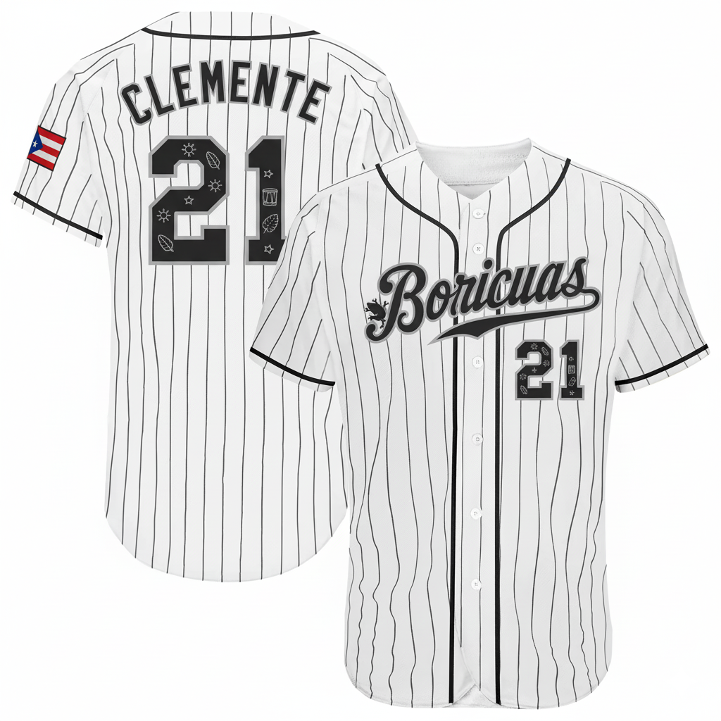 Premium Puerto Rico Baseball Jersey Deal: Custom Authentic White Black Pinstripe
