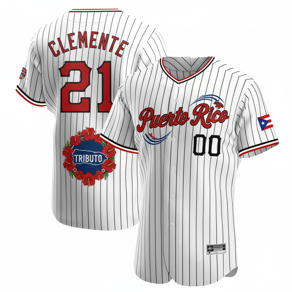 Puerto Rico Baseball Jersey – Custom Dri-Fit Long Sleeve Pinstripe White Black Red